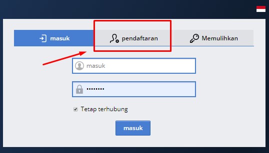 3. Pilih tab "pendaftaran", isikan dengan username dan email yang akan anda daftarkan lalu isi kode verifikasi dengan benar.