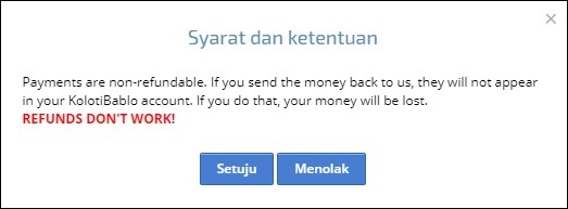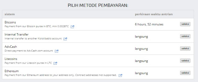 Metode pembayaran ini memudahkan untuk melakukan pengiriman saldo hasil input captcha kepada akun kolotibablo yang lain dengan minimum transaksi sebesar 0.5 USD dengan syarat akun yang akan dikirimi saldo itu juga memiliki saldo minimal 0.5 USD di walletnya.